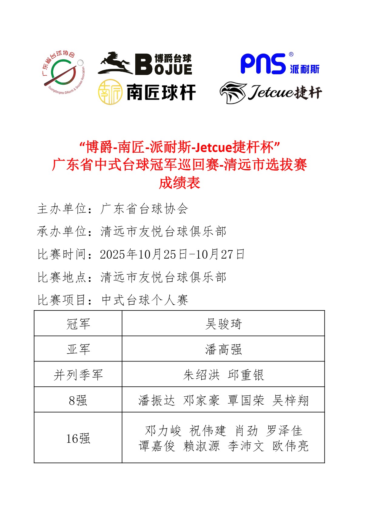 【地方赛事】 广东省中式台球冠军巡回赛·赛事专题