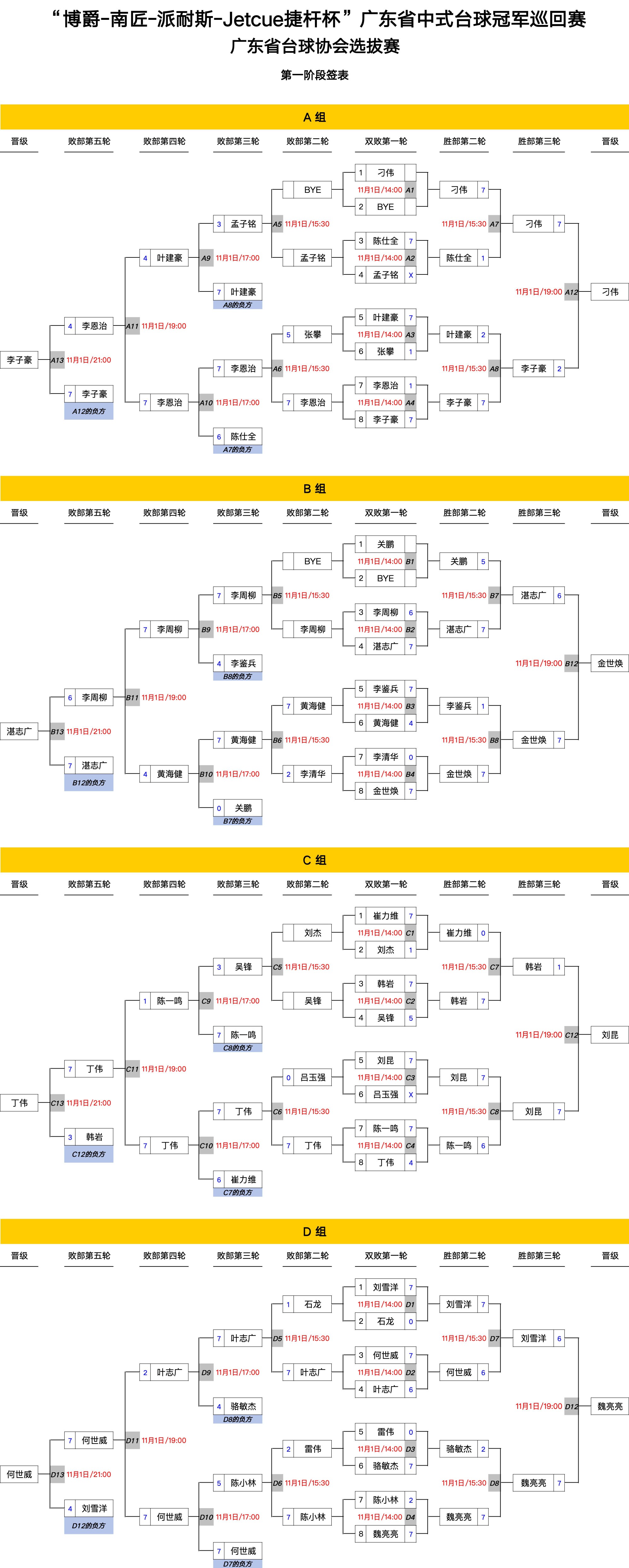 2025年广东省中式台球冠军巡回赛广东省台球协会选拔赛·对阵表