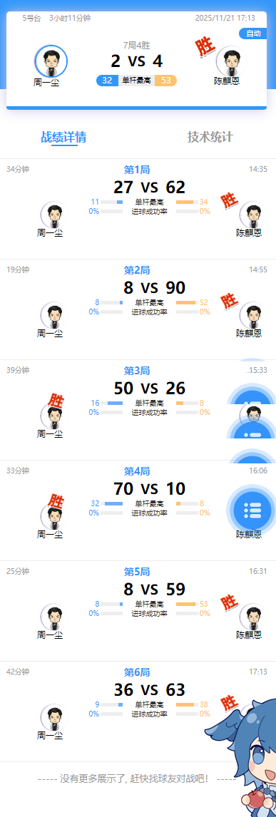 周一尘 2-4 陈麒恩 详情
