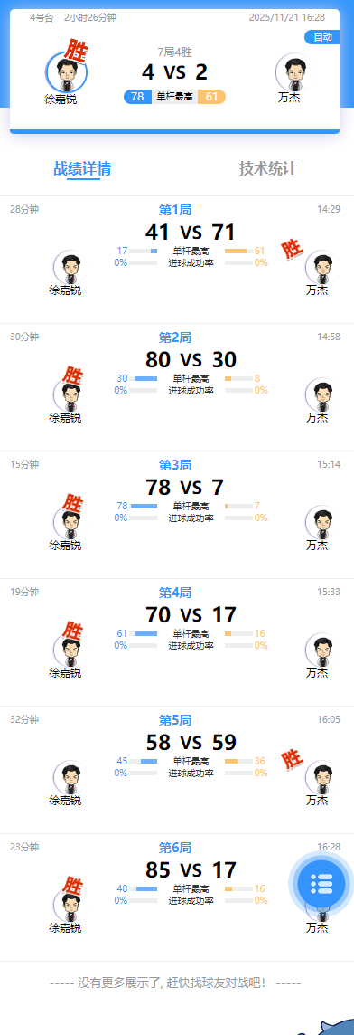 徐嘉锐 4-2 万杰 详情
