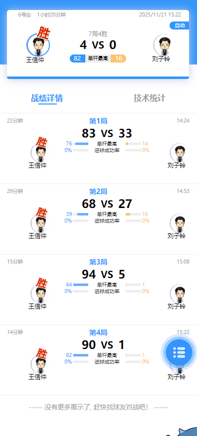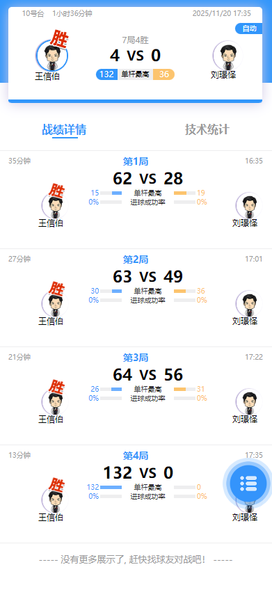 王信伯 4-0 刘璟怿 详情