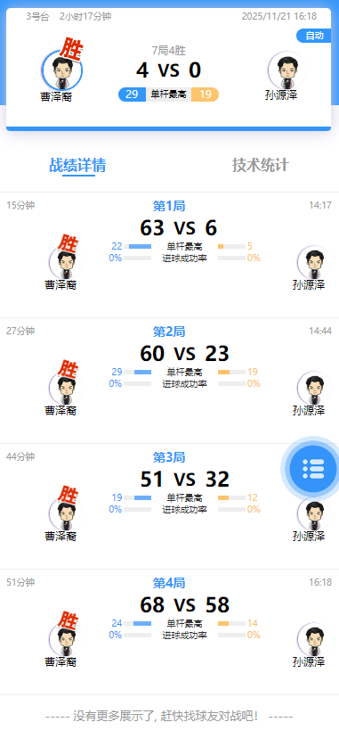 曹泽裔 4-0 孙源泽 详情