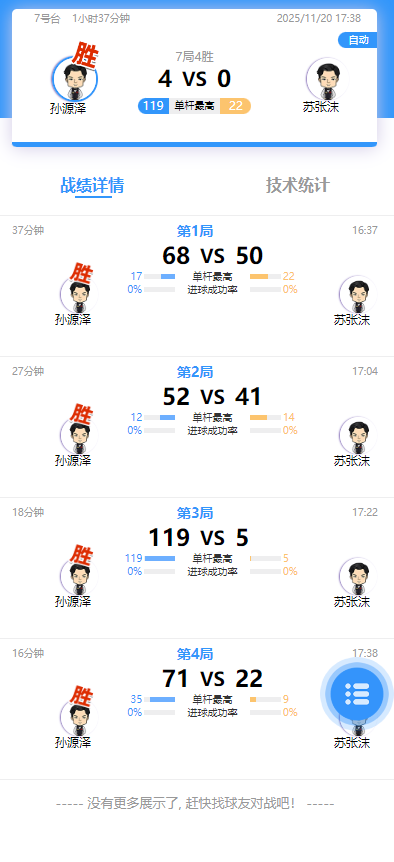 孙源泽 4-0 苏张沫 详情