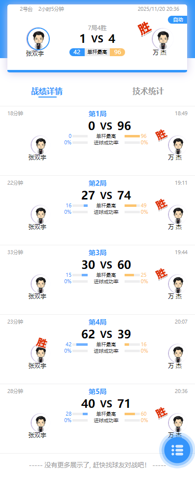 张双宇 1-4 万杰 详情