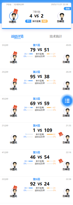徐嘉锐 4-2 陈麒恩 详情