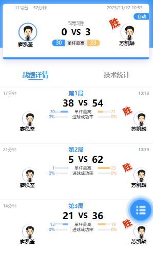 廖泓荃 0-3 苏凯麟 详情