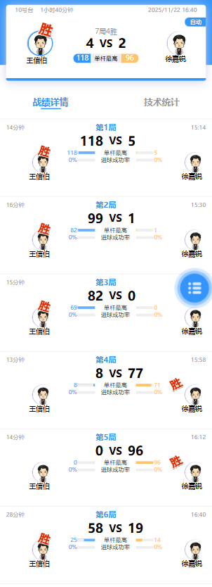 王信伯 4-2 徐嘉锐 详情