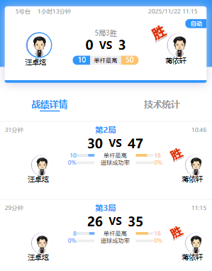 汪卓炫 0-3 蒋依轩 详情