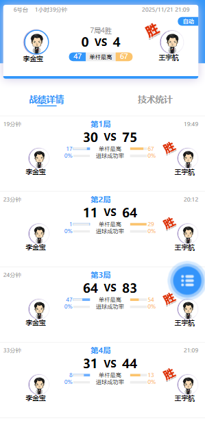 李金宝 0-4 王宇航 详情