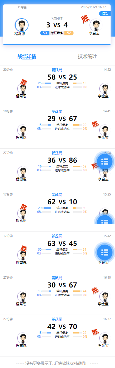 程霄恩 3-4 李金宝 详情