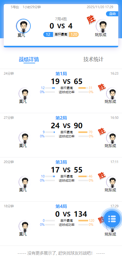莫凡 0-4 姚东成 详情