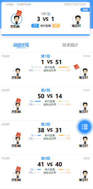 苏凯麟 3-1 蒋依轩 详情
