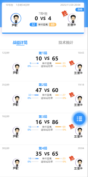 尹歌 0-4 王信仲 详情